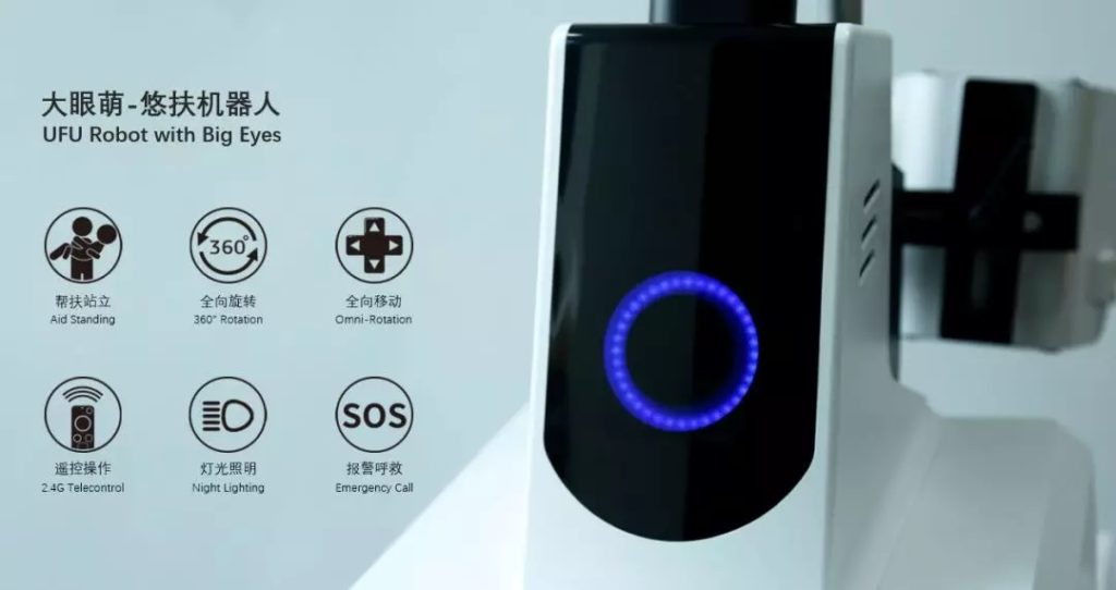 這款服務型機器人由杭州程天科技發發展有限公司設計研發,名為“悠扶機器人”。通過名字便可知道是一款幫扶站立的機器人產品。主要面對是失能、弱能,無法正常站立和行走的用戶人群。