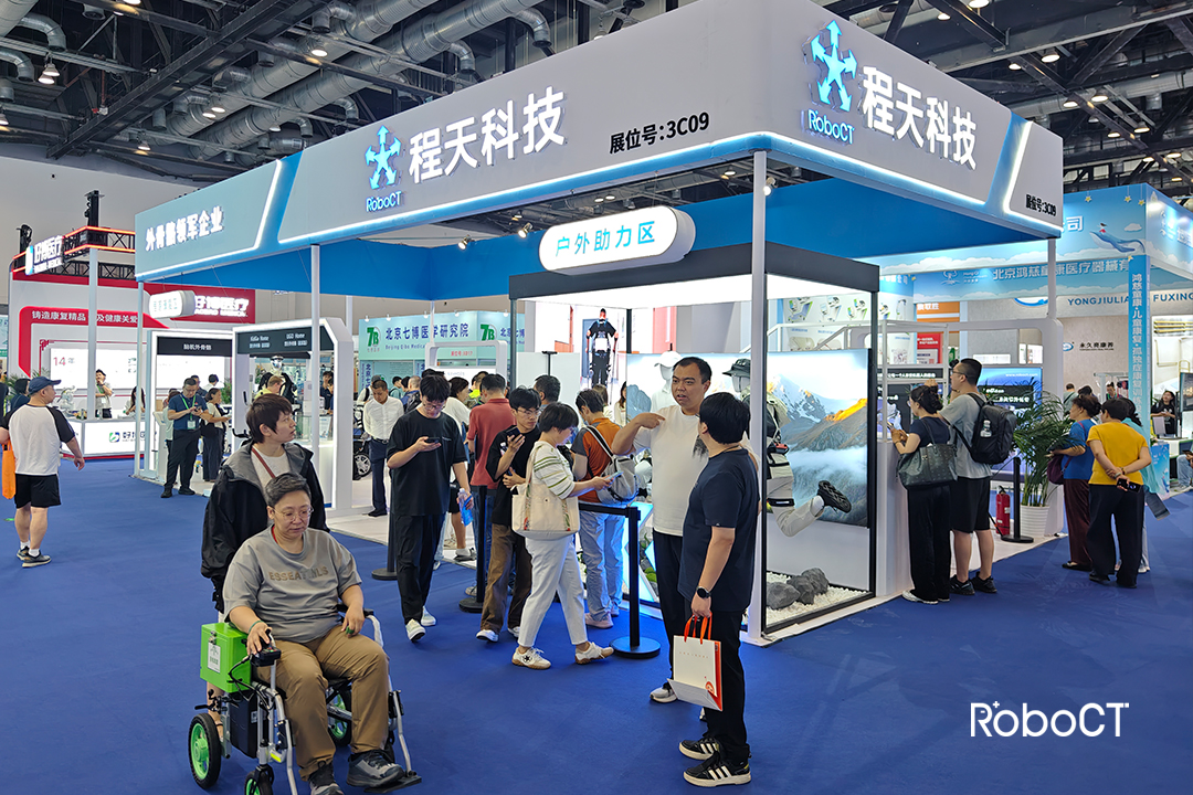 展會期間,專業觀眾和訪客也在企業展位親身體驗這些創新產品,與企業團隊面對面交流。程天科技此次展出的產品各具特色,涵蓋了從行動助力到神經康復的全方位解決方案。速行髖、膝關節助力外骨骼專為日常步行場景設計,融合AI智能算法與高精度傳感技術,可實時識別用戶的步頻與發力習慣。