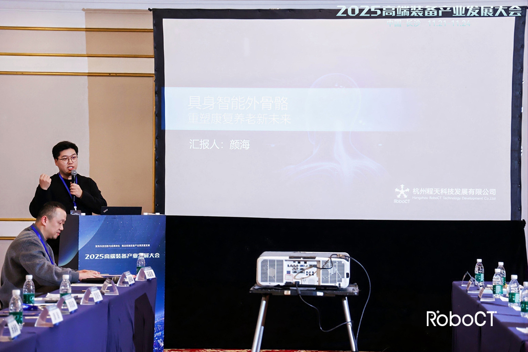 22日,以“聚焦科技創新與成果轉化,推動高端裝備產業高質量發展”為主題的2025高端裝備產業發展大會在長沙開幕,大會匯聚國內頂尖科研機構與龍頭企業,共同探討高端裝備領域的前沿技術與產業趨勢,程天科技產品總監顏海受邀出席分論壇,并發表題為 《具身智能外骨骼重塑康復養老新未來》 的主題報告。
