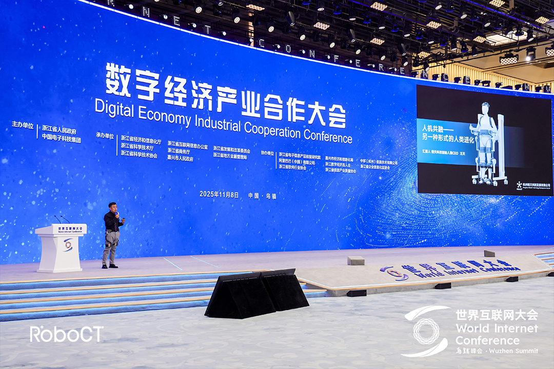 8日,在2025年世界互聯網大會烏鎮峰會的數字經濟產業合作大會上,程天科技創始人兼CEO王天博士穿戴公司最新一代助力外骨骼產品登臺演講,以“人機共融——另一種形式的人類進化”為主題,展示智能康復與助力外骨骼領域的前沿成果。