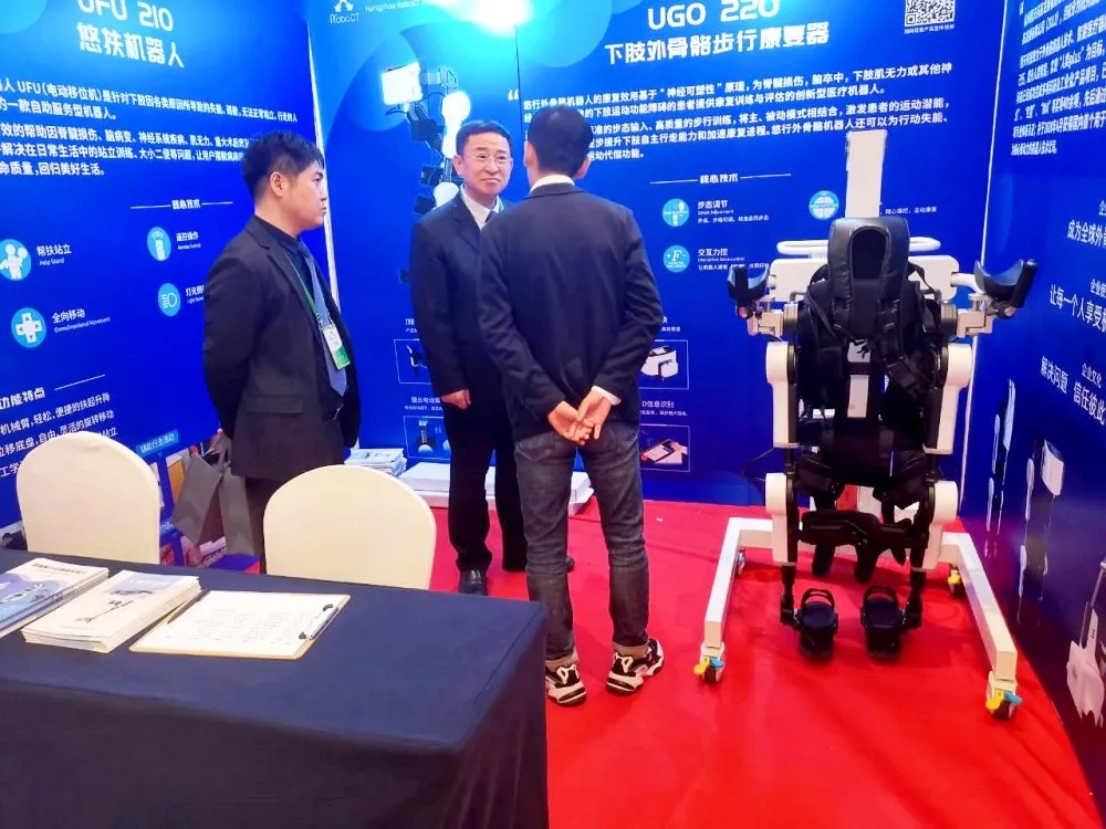 程天科技攜外骨骼機器人亮相本次大會。程天新一代下肢外骨骼機器人的主被動訓練模式和多種步態演示在會議期間引起了各地參會代表的高度興趣和關注,多位臨床專家、老師表示希望程天機器人能夠早日投入到醫院使用,讓患者真實的體驗到先進康復設備的臨床效果。